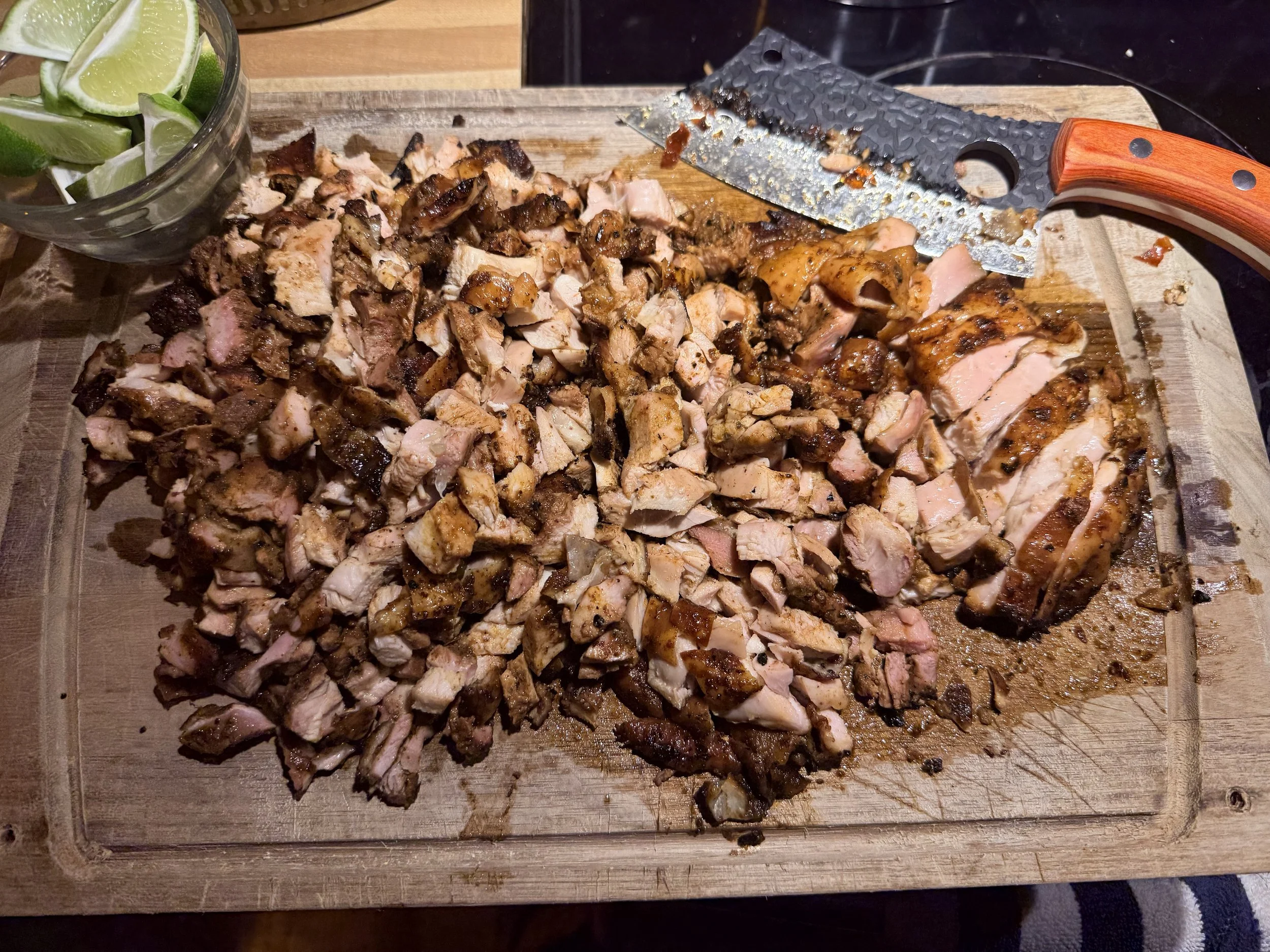 Tender, smoky chicken thighs marinated in a rich, traditional adobo made from toasted dried peppers, citrus, and warm spices. This pollo asado is deeply flavorful, beautifully colored, and perfect tucked into warm tortillas with simple, fresh toppings.